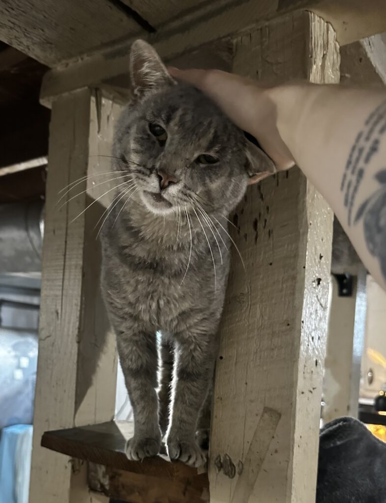 Introducing Olive, a sweet and resilient grey domestic short-haired male cat with a soft coat and an even softer heart. Despite being diagnosed as FIV positive, Olive is full of life, love, and curiosity—ready to find a special forever home where he can thrive and be cherished.